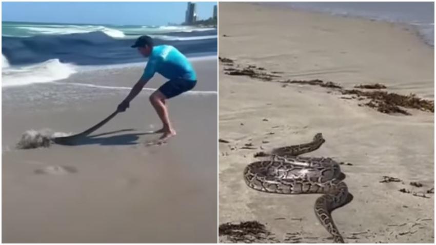 Los bañistas en Hallandale Beach encontraron una serpiente en la arena el jueves provocando asombro y pánico entre algunos. La vista inusual fue registrada por varias personas cerca de la orilla. La serpiente finalmente fue capturada y sacada de la playa.