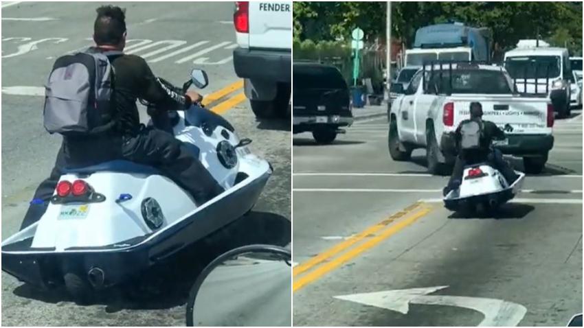Un video que se ha vuelto viral en redes sociales ha provocado una ola de comentarios y burlas. Un hombre en Hialeah convirtió su moto acuática en rodante y paseó por toda la ciudad. «Hasta tiene una placa» dijo sorprendido un usuario en redes sociales. ¿Qué te parece este invento de Hialeah?