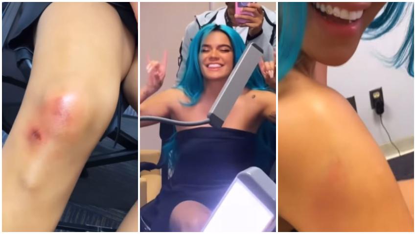 La cantante colombiana Karol G se dio una aparatosa caída en unas escaleras del escenario de su concierto en Miami pero a pesar