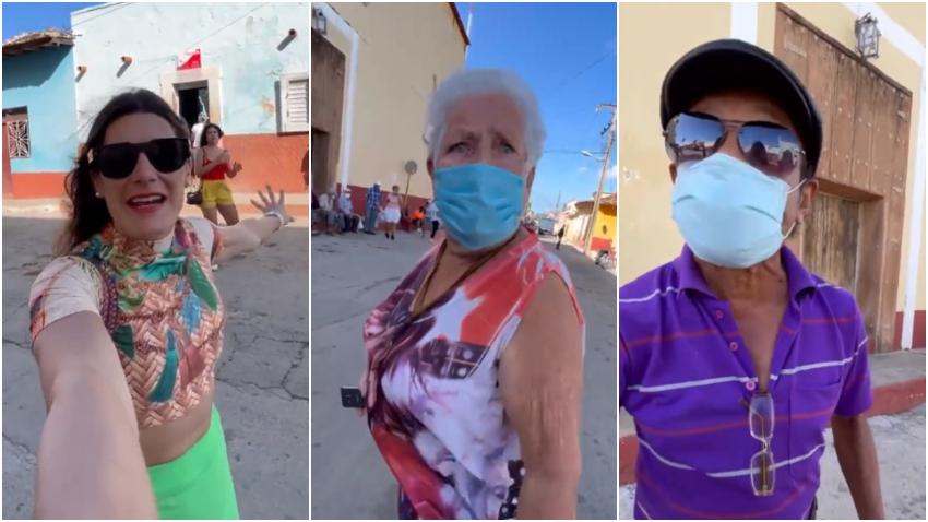 La española grabó una cola para el pan y explicaba a sus seguidores los detalles sobre la libreta de racionamiento cuando una anciana y un anciano salieron a increparla.