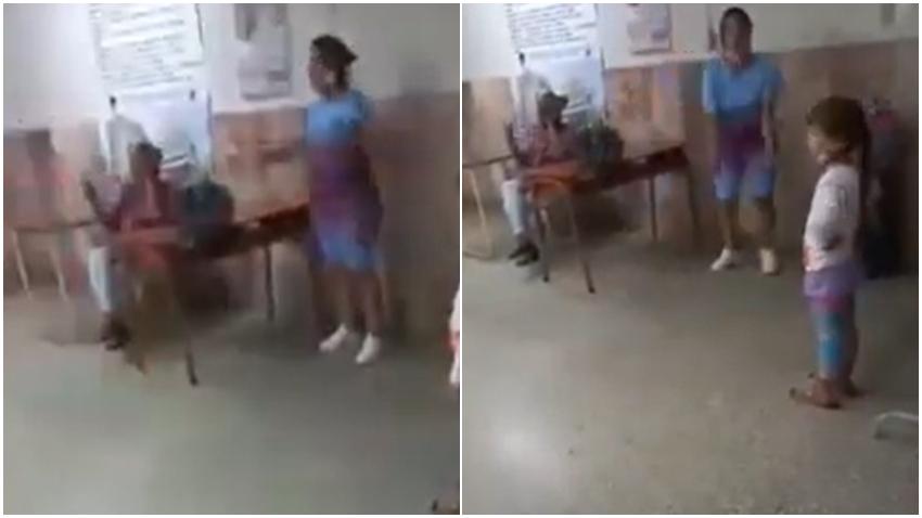 Una madre cubana con su hija enferma con fiebre, angustiada por la demora de los médicos en atender a los niños, empezó a protestar en la sala de espera del hospital: