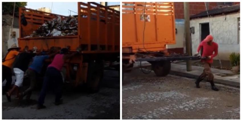 Carreta de basura empujada por cubanos, ante la escasez de combustible (Imagen tomada de redes sociales)