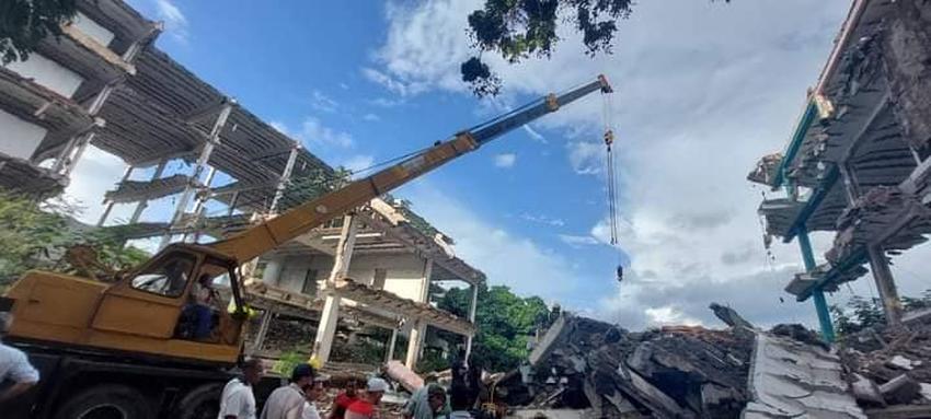 Un hombre quedó atrapado en los escombros tras el desplome de una estructura de la Escuela Vocacional en Santiago de Cuba.