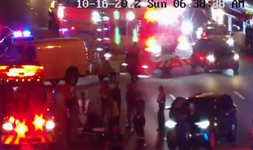 Según la Patrulla de Caminos de Florida, una persona que viajaba en una motocicleta perdió el control, lo que provocó que el conductor masculino y una pasajera salieran disparados y aterrizaran en la carretera.