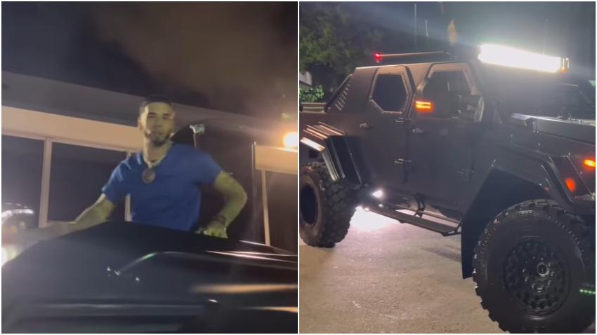 «Me compre un tanque, salí del Bugatti, mucha controversia con los Bugattis. El primer tanque civil en la calle aprobado en la calle. Aprobado por los militares y la USA. Me lo trataron de aguantar en la frontera, pero con los papeles me lo dejaron pasar. Las gomas son a prueba de balas, todo es a prueba de balas»